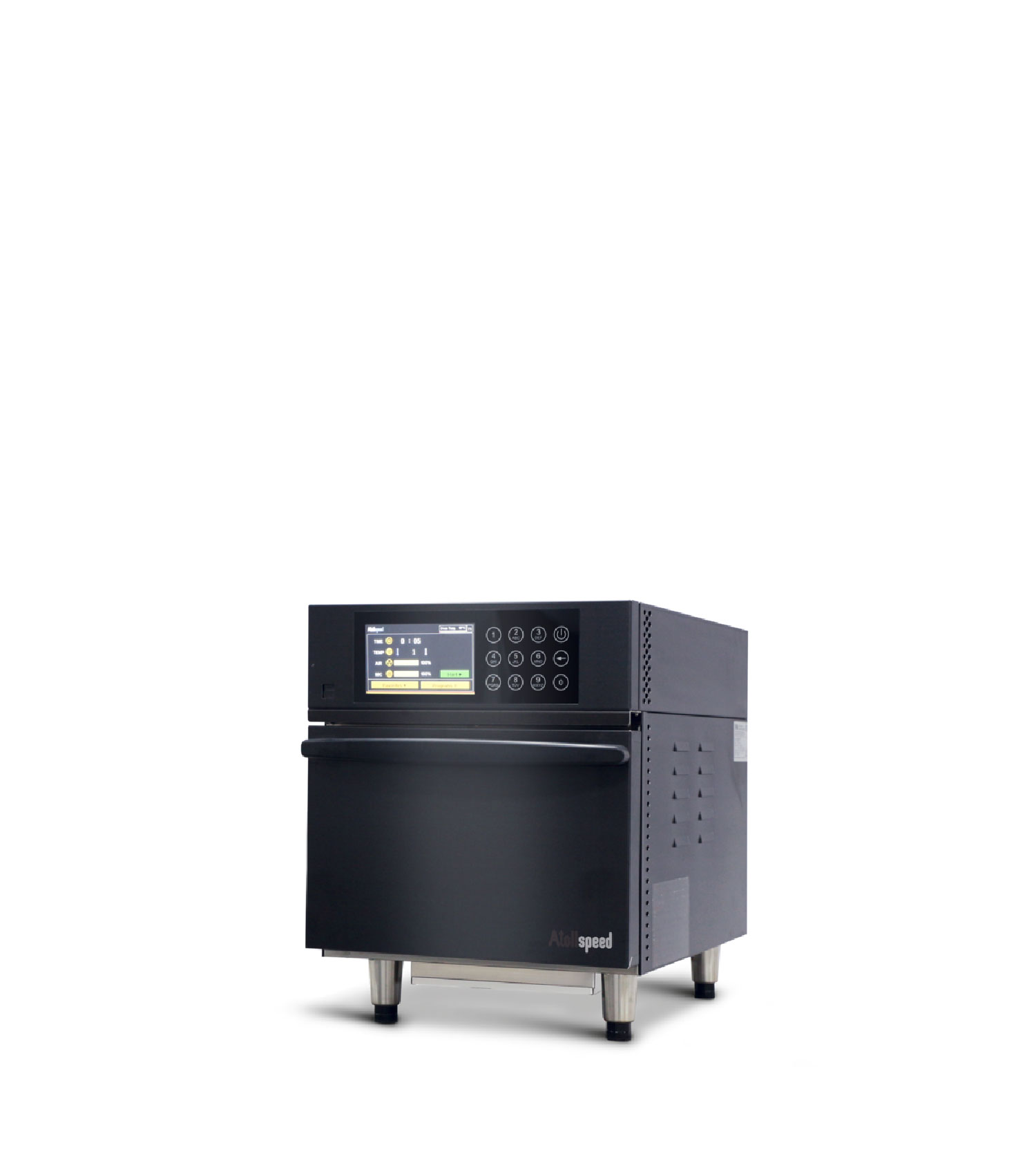 El Atollspeed es un horno híbrido que combina aire caliente, calor por impacto y microondas en un solo aparato. El complemento perfecto para su horno WIESHEU en la tienda.