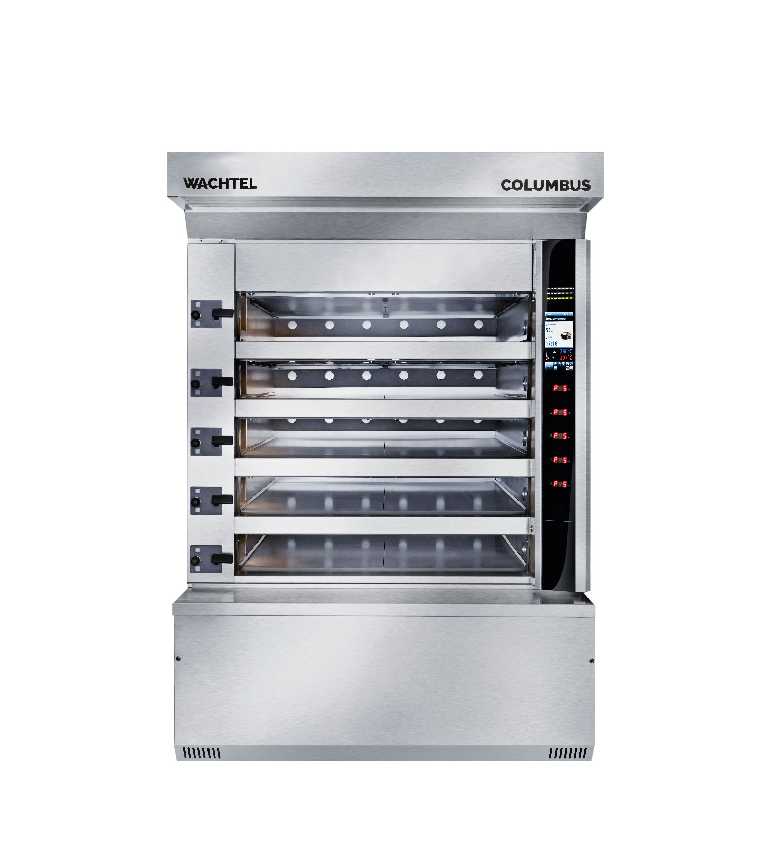 El COLUMBUS es un horno de pisos (deck oven) fabricado en Alemania desde 1923. Se destaca por ofrecer la máxima superficie de cocción con una mínima superficie ocupada y es conocido por su rendimiento excepcional y resultados de cocción uniformes. Puede funcionar con aceite o gas.